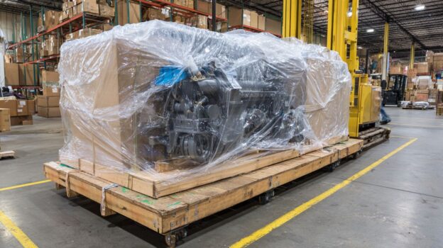 Custom Poly Sheeting protects large products during transportation through its flexible yet durable construction, which absorbs shocks and vibrations while providing a custom-fit cover to prevent scratches, impacts, and exposure to road hazards.